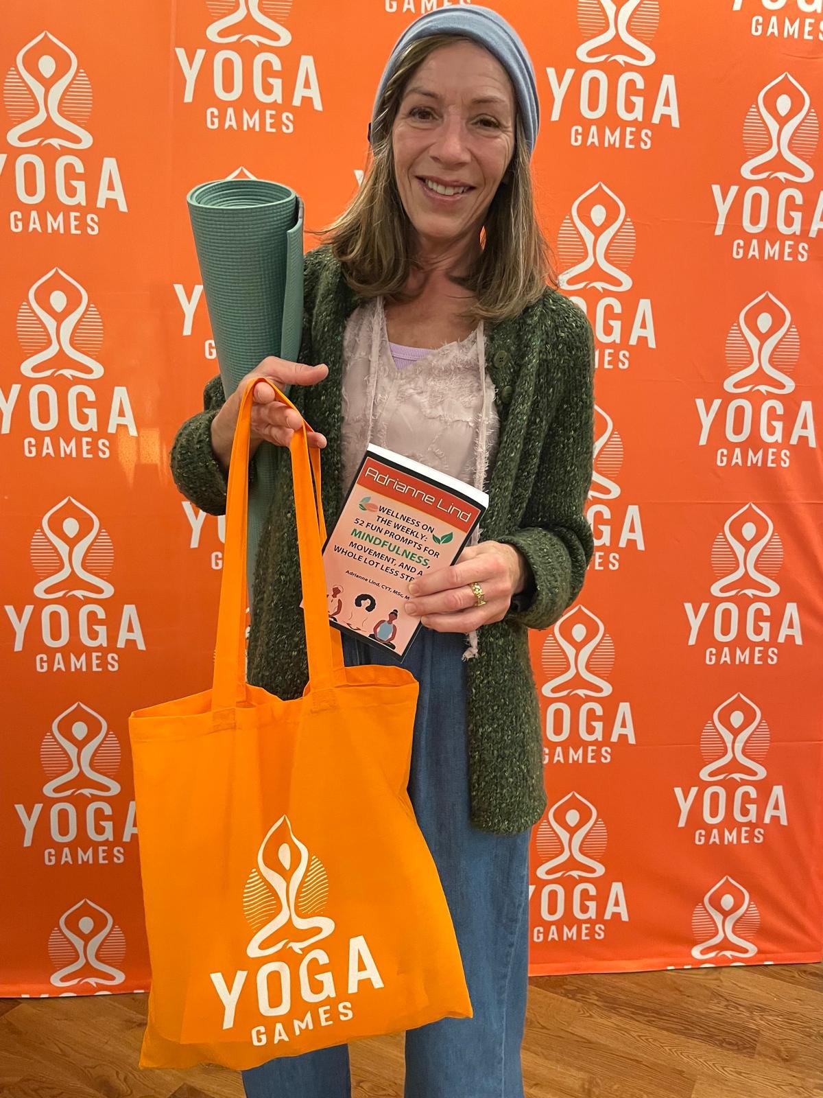 I am incredibly grateful that my book (pictured here with a happy participant), Wellness on the Weekly: 52 Fun Prompts for Mindfulness, Movement and a Whole Lot Less Stress! made its goodie-bag debut at Yoga Games #yogagamesbåstad at Hotel Skansen i Båstad. #gratitude