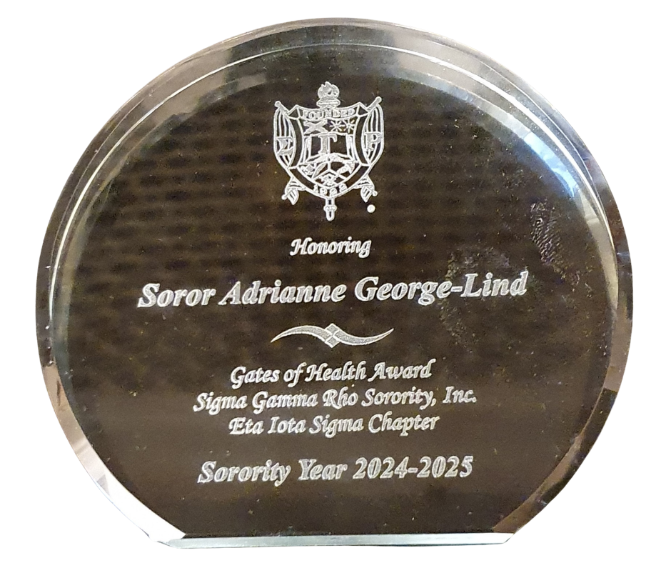 Honored to receive the Gates of Health Award from Sigma Gamma Rho Sorority, Inc. – Eta Iota Sigma Chapter .